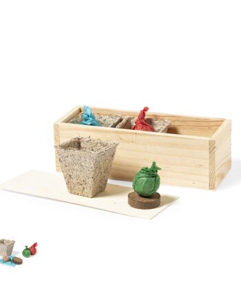 REF: k-2673Kit horta com sementes de coentros, salsa e mangericãoBolsitas em estojo de madeira com instruções de plantação, distintivo Made in Europe e com 3 compartimentos independentesApresentado…€7.80 (+IVA) Select options -