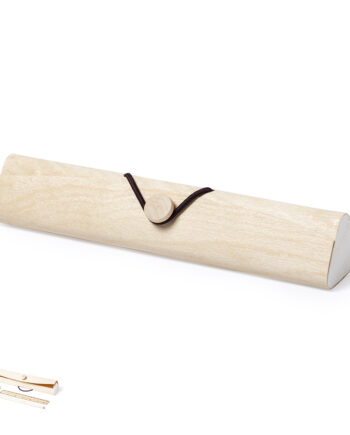 REF: k-6942Estojo de linha nature fabricado em madeira, com fecho de fita elástica5 acessórios incluídos: 1 x esferográfica de mecanismo pulsador em cartão reciclado, com acessórios em…€2.06 (+IVA) Adicionar ao Carrinho -