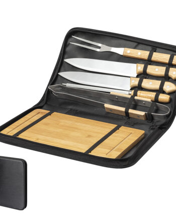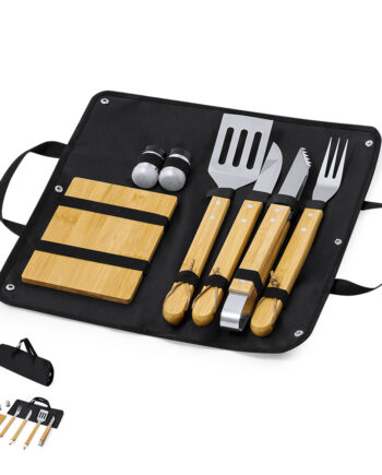 REF: k-20469Set de churrasco elaborado em bambu e aço inoxidávelEste conjunto inclui 7 acessórios de metal com pegas de bambu: 1 faca, trinchador, pinças, espátula, saleiro e…€19.80 (+IVA) Adicionar ao Carrinho -