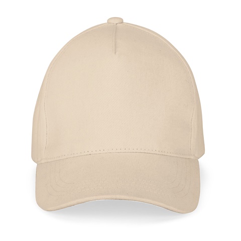 Boné 100% algodão escovado com 5 painéis, ilhós para ventilação (260 g/m²) e ajustável com fivela metálica. Disponível numa variada gama de cores. Tamanho: 590 mm