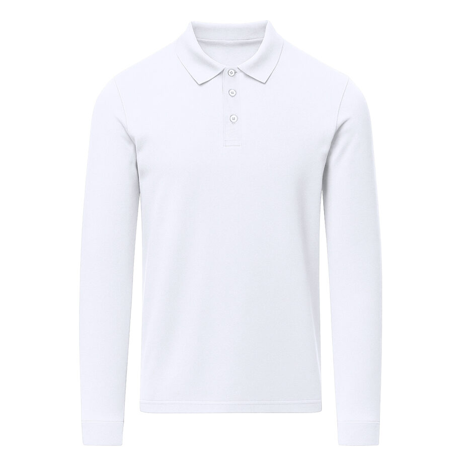 Polo unissexo de manga comprida, confecionado em tecido piqué