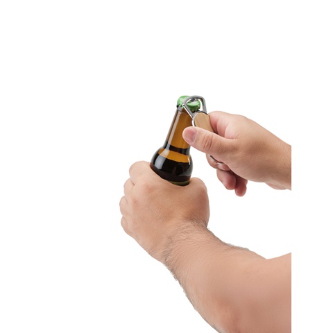 Porta-chaves em ferro com formato redondo em zinco e bambu. A função de abre-garrafas torna este porta-chaves um acessório prático para ter sempre à mão. Fornecido em bolsa em papel kraft. Por ser um produto composto por materiais naturais, a cor do produto e o resultado da impressão podem variar entre produtos. Argola: ø 32 mm | Produto: 58 x 39 x 3 mm | Conector: 9 mm | Total: 90 x 39 x 3 mm | Bolsa: 100 x 55 mm