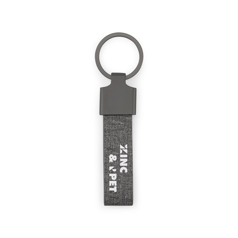 Porta-chaves em metal e PET reciclado (30% rPET), com formato retangular. Possui uma argola para facilitar a colocação de chaves e pequenos objetos. Fornecido em bolsa em papel kraft. 87 x 25 x 7 mm
