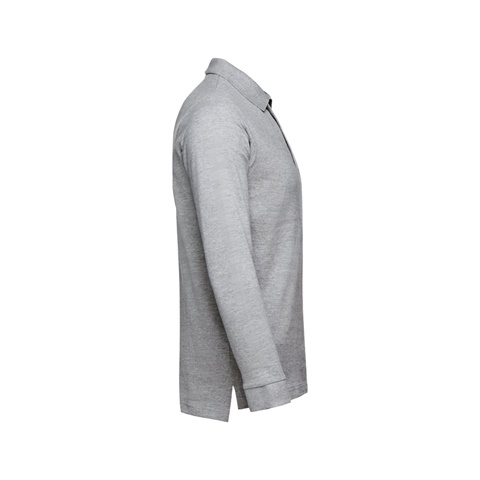 Polo de manga comprida para homem em malha piqué 100% algodão cardado (210 g/m²) (cor 183: 85% algodão/15% viscose). Polo de corte regular com gola e punhos em Rib, sendo a gola reforçada com fita em malha piqué. Contém carcela reforçada com 3 botões à cor (botão suplente inserido na costura interior). Peça cortada e cosida com aberturas laterais na parte inferior. Etiqueta visível removível. Tamanho: 3XL